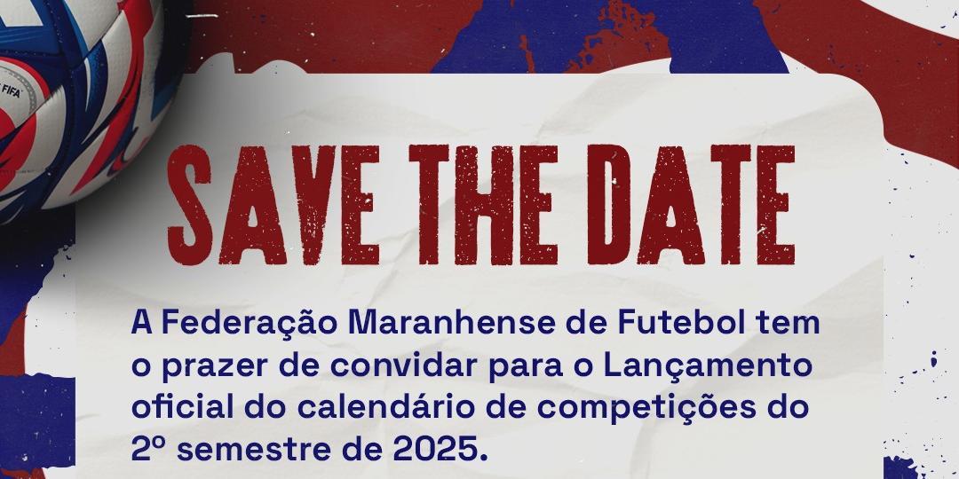 A Federação Maranhense de Futebol (FMF) convida para o lançamento oficial do calendário de competições do segundo semestre de 2025. O evento acontece no dia 10 de setembro, às 19h, no Hotel Premier, em São Luís.