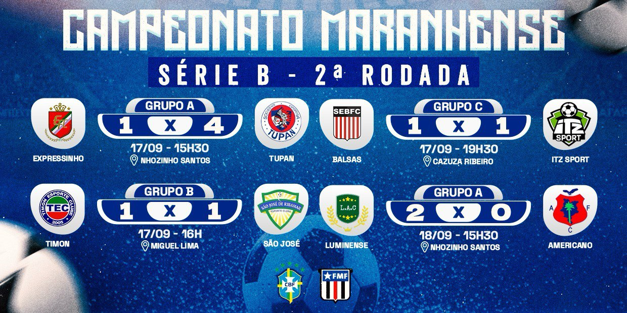A 2ª rodada do Campeonato Maranhense Série B trouxe resultados movimentados e mostrou o equilíbrio da competição. No Grupo A, o Tupan foi destaque ao aplicar uma goleada de 4 a 1 sobre o Expressinho, no estádio Nhozinho Santos. Ainda pelo mesmo grupo, o Lumiense venceu o Americano por 2 a 0, também no Nhozinho, garantindo pontos importantes na tabela.