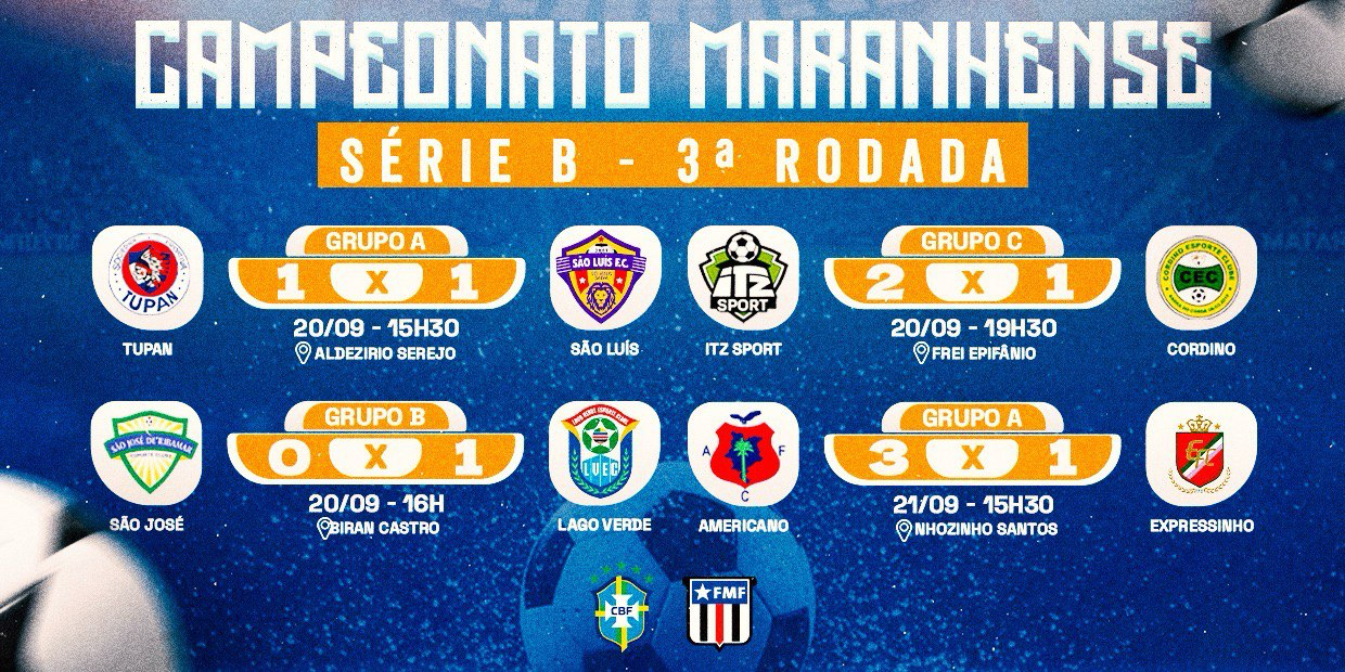 A 3ª rodada do Campeonato Maranhense Série B movimentou os gramados e mostrou equilíbrio entre as equipes. No Grupo A, Tupã e São Luís empataram em 1 a 1 no estádio Aldeziro Serejo, enquanto o Americano venceu o Expressinho por 3 a 1 no Nhozinho Santos, garantindo três pontos importantes na competição.