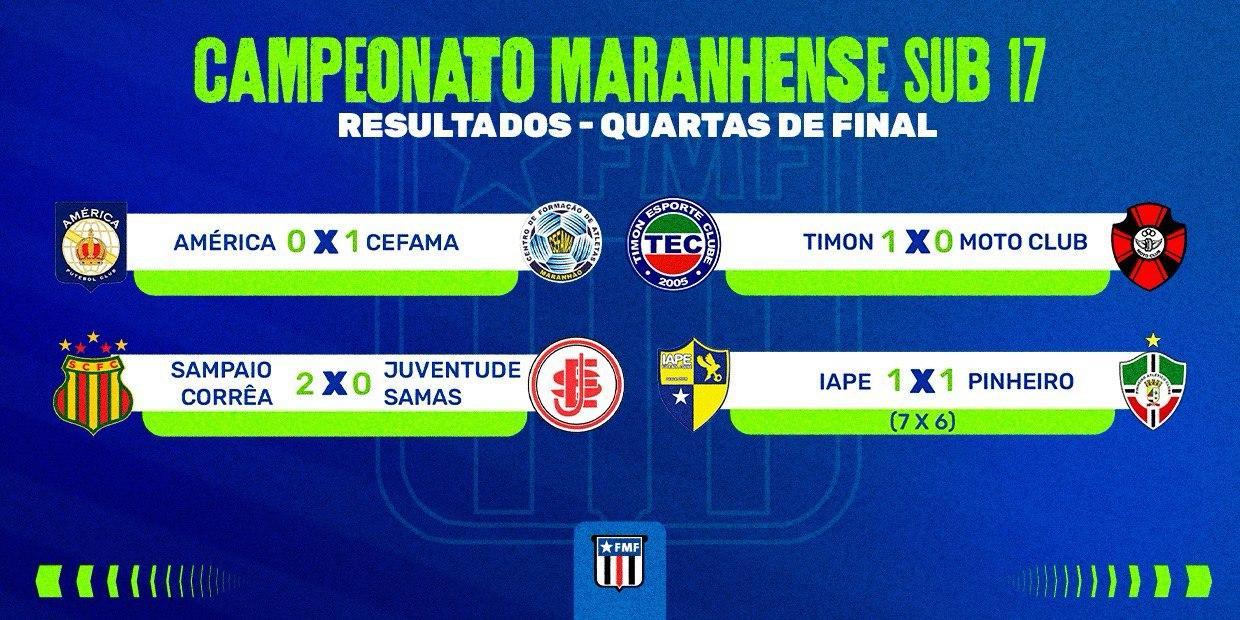 As quartas de final do Campeonato Maranhense Sub-17 chegaram ao fim com jogos equilibrados e muita disputa em campo. Com quatro confrontos decisivos, a rodada definiu os times que seguem na luta pelo título estadual da categoria.